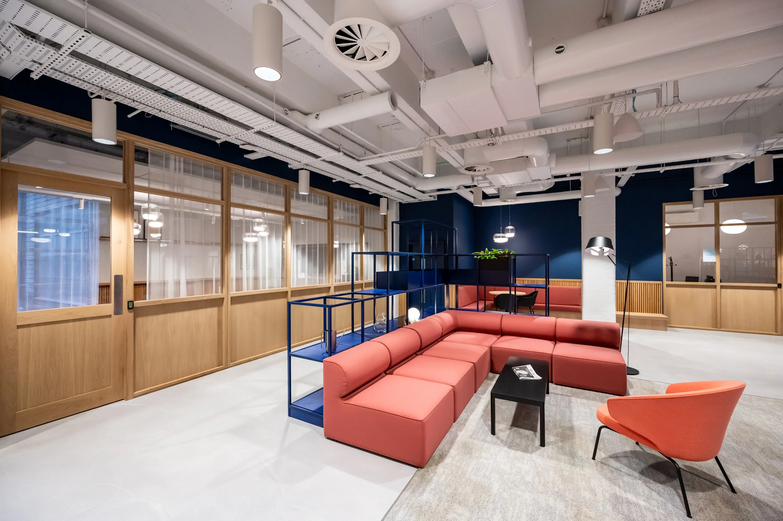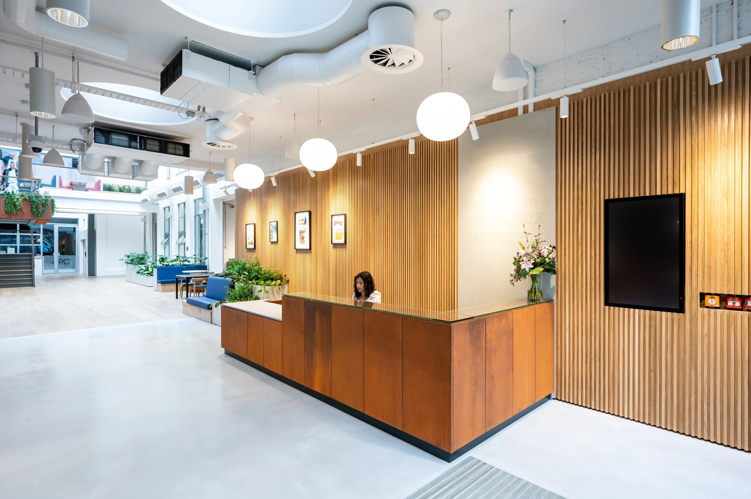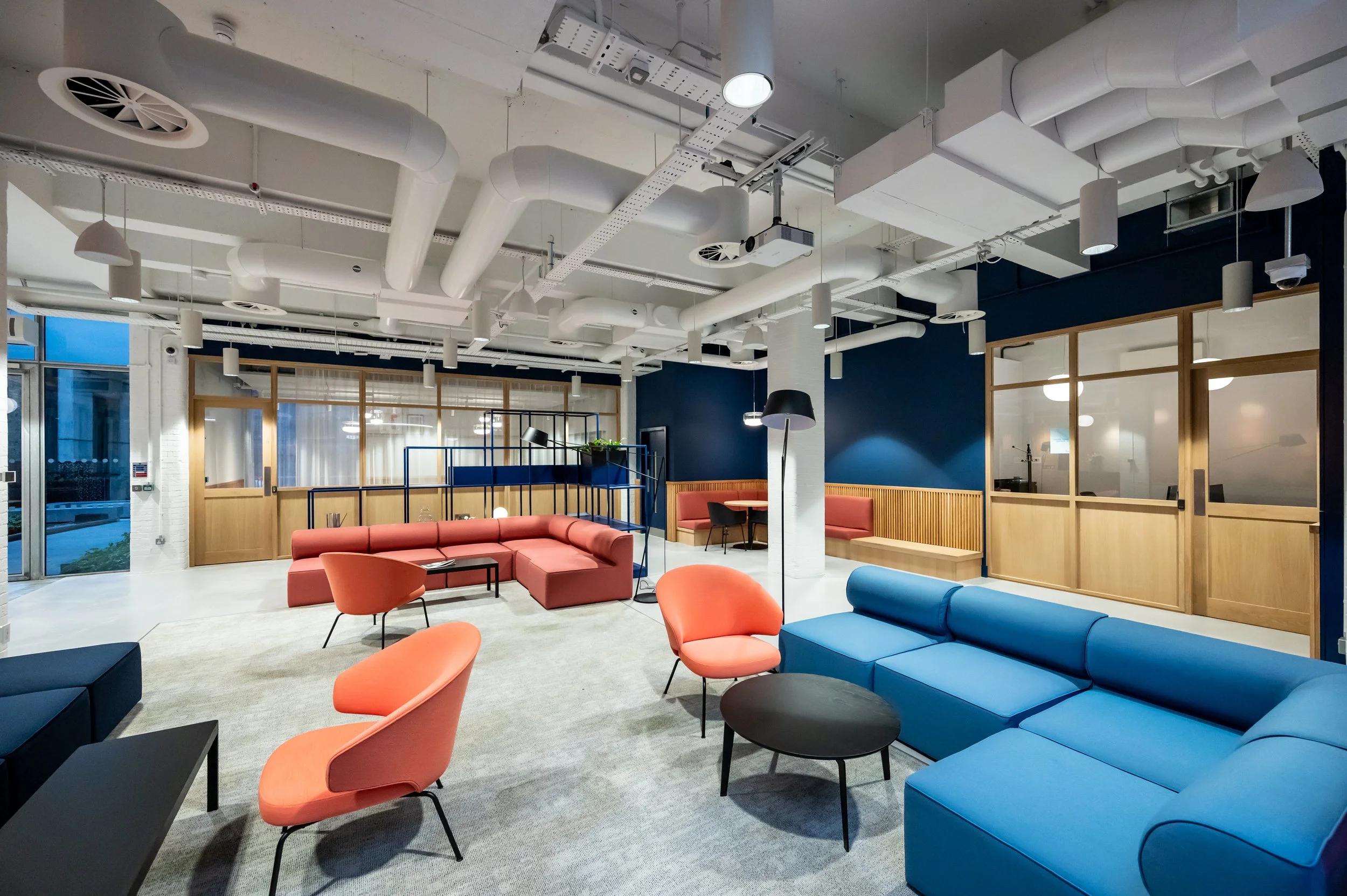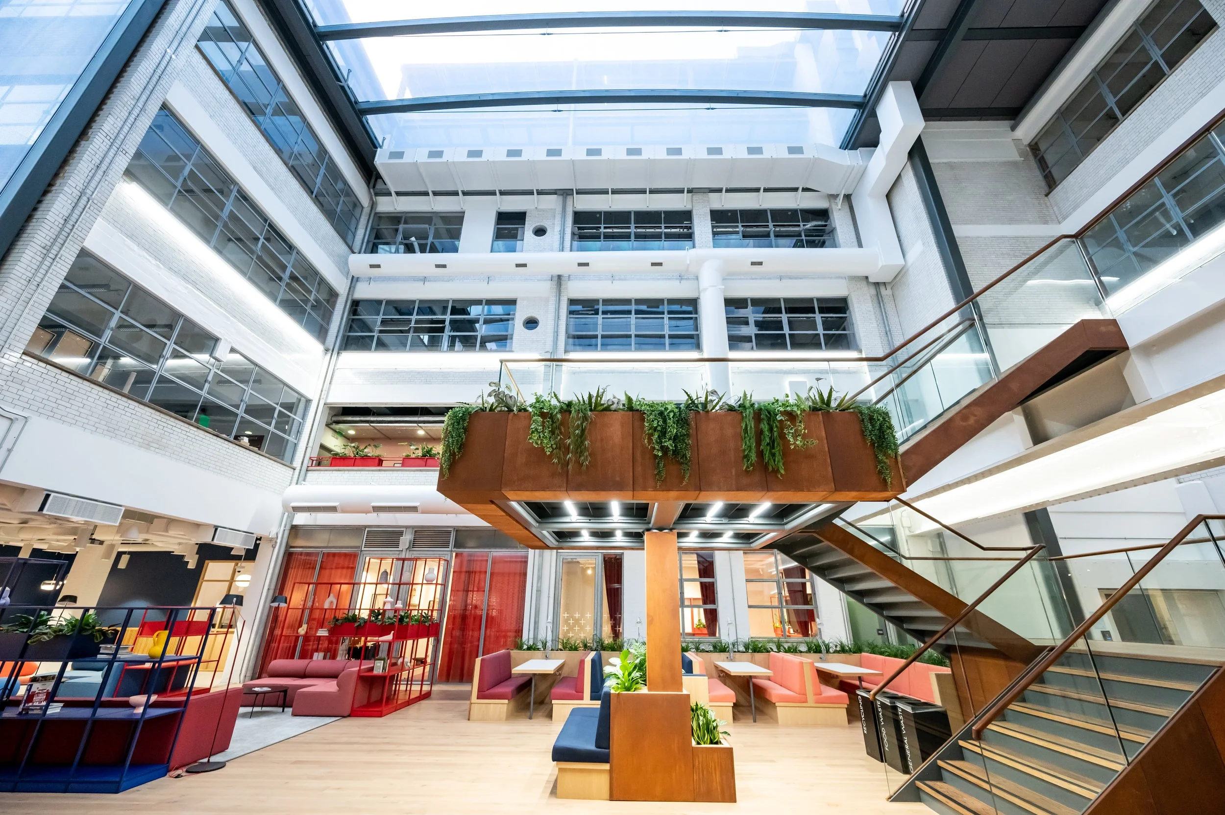 The Metal Box Factory, a fit-out that seamlessly blends industrial heritage with contemporary design. This stunning redevelopment features over 200 bespoke offices and studio spaces, many with balconies offering skyline views, all centred around a striking atrium and an enclosed roof garden. The addition of a vibrant café, modern meeting rooms, and high-spec studio spaces of varying sizes and styles creates a dynamic environment tailored for ambitious businesses. Through meticulous attention to detail, we crafted a workspace that respects the building's legacy while meeting the demands of today's innovative enterprises..