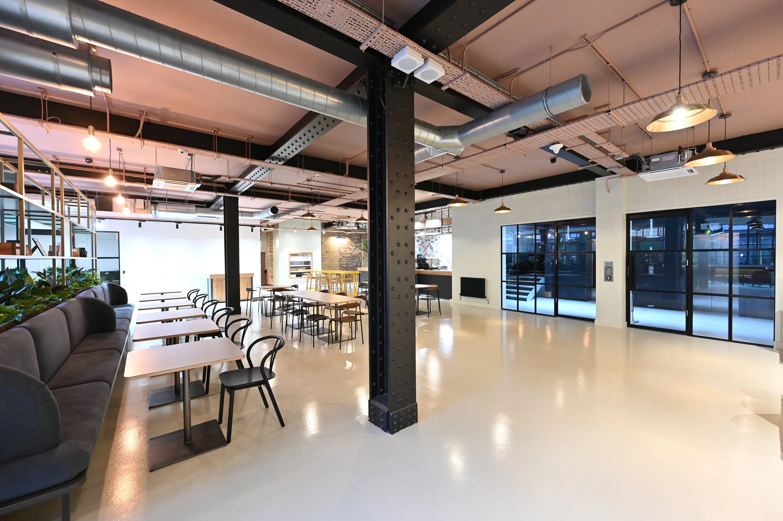 A comprehensive renovation which included the complete strip-out and refurbishment across four floors, sandblasting of walls, asbestos removal, demolition works, light well renovation and installation, office subdivision and the installation of new mechanical and electrical systems, restrooms and showers. The result is a spacious, bright, and modern industrial environment that retains the character of the original building. The ground floor now features a welcoming reception area, meeting spaces, town hall, Arthur’s Coffee Bar, restrooms and breakout areas, all designed to foster creativity and collaboration.